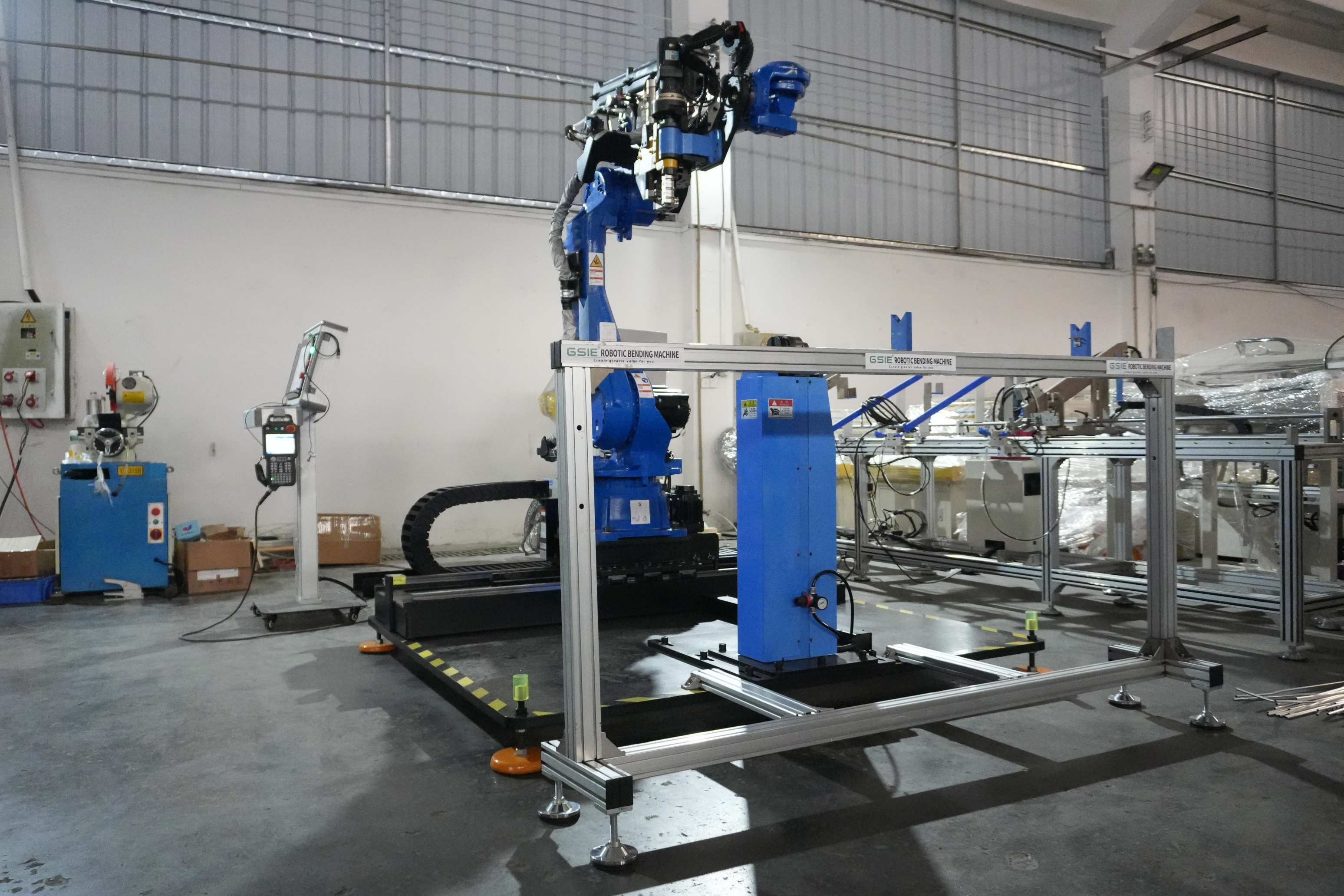 lexibility and automation greatly improved by industral robot with bending device on mechanical arm. The bending device can rotate with bending clamping mold for the complex bending with multiple radius and layer molds .So the robot bending machine have great advantage for abnornal bending compare with